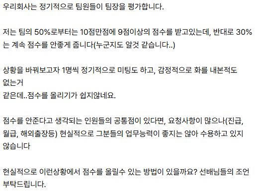 초기에 내가 팀장 역할을 부여받았을 때, 그냥 내가 할일이 너무 많아서 팀원들에 신경쓰기 어려운 상황이었다.