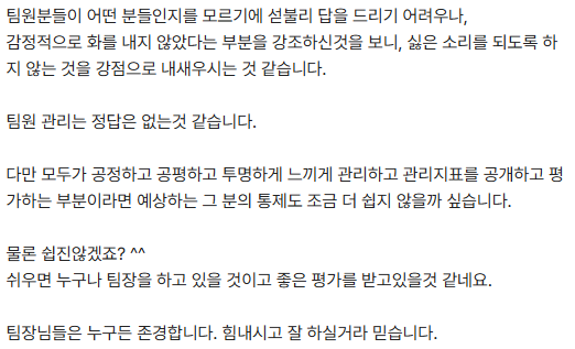 나도 팀장이신 독자분들을 사랑하겠다. 힘내보자. 팀장은 고독하다.