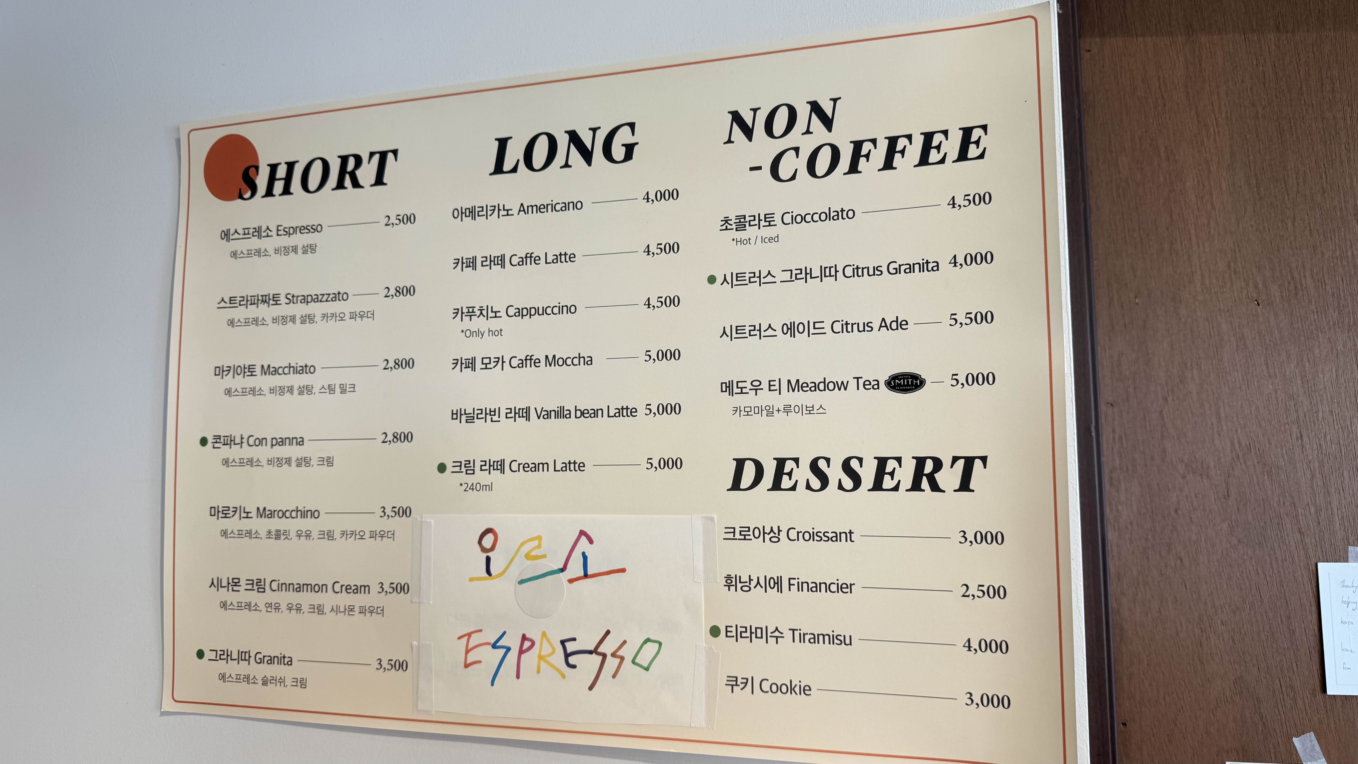 에스프레소 두잔 시켜도 싯가로 스타벅스 아아 한장정도의 가격이다.