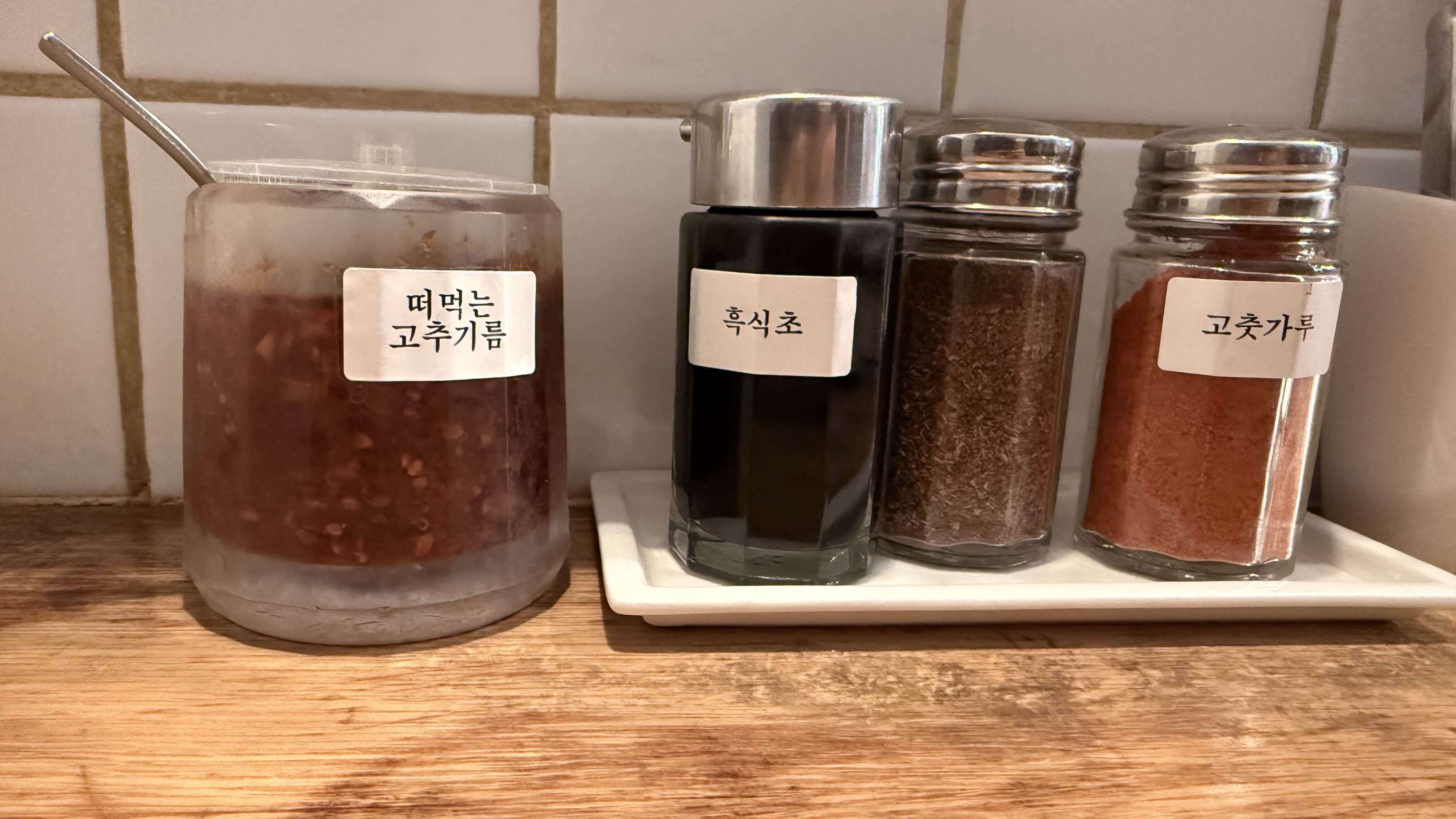 고추기름은 엄청 맴진않지만, 매콤한 맛을 살짝 킥을 넣어준다. 흑식초는 묘한 맛을 불러준다.