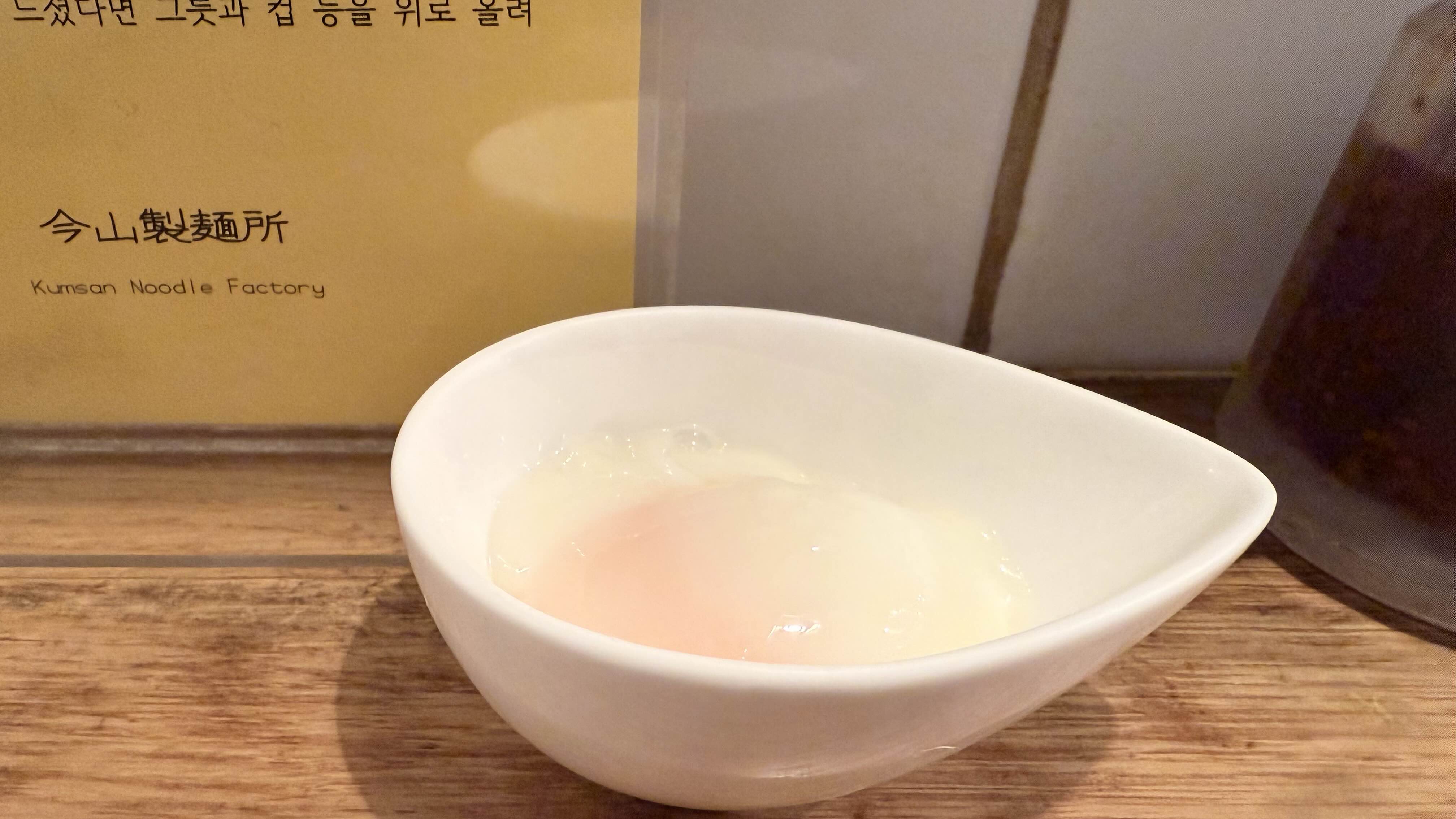 온천달걀의 자태가 참 곱다. 넣는 타이밍은 1/3 남았을때다.